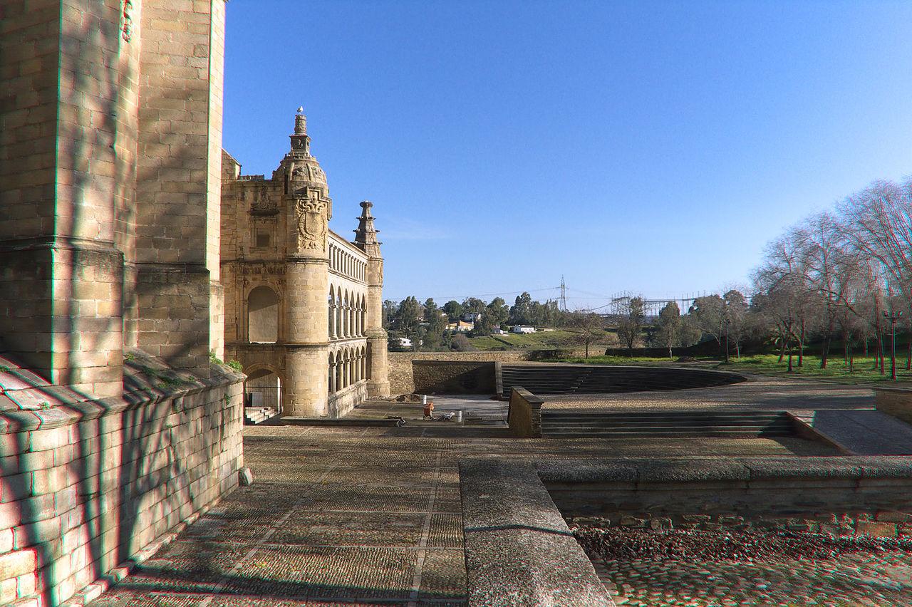 El conjunto estaba formado por una hospedería, la iglesia y el convento. La iglesia, que no llegó a terminarse, está dedicada a la Inmaculada Concepción. Conserva un hermoso claustro gótico y una fachada exterior renacentista, conocida como la Galería de Carlos V. Es sede del Festival de Teatro Clásico de Alcántara, que se celebra en agosto.